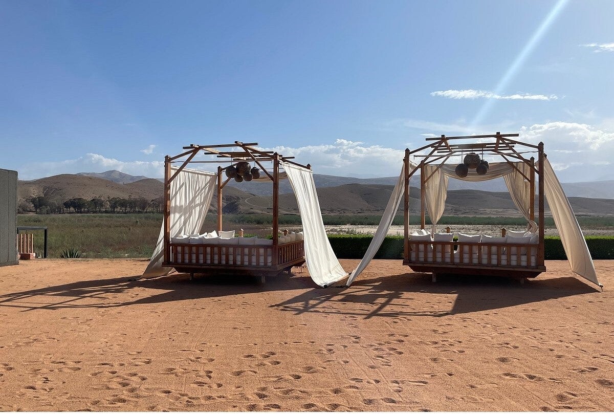 De laatste nacht slaap je in Kalyptus Luxury Camp, midden in de Agafay woestijn, wat mij betreft de perfecte afsluiting van de reis.
