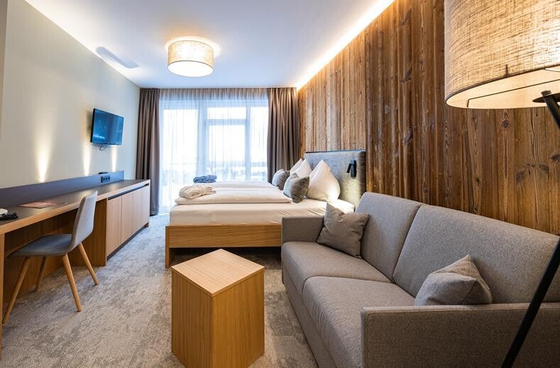 Ik heb meerdere hotels en appartementen die te boeken zijn voor 4, 5 of 8 dagen. Bijvoorbeeld dit hotel in Zell am See, dat vrijwel direct aan de piste ligt. Hier hoef je je ook na een dag sneeuwpret niet te vervelen. Lekker buiten zwemmen en genieten van livemuziek en....wijnproeverijen, Het hotel bestaat uit twee delen die via een ondergrondse tunnel met elkaar zijn verbonden. Via een hellende weg naar beneden loop je zo naar het centrum, naar boven kom je uit bij de Schmittenbahn. Bij goed weer kun je over het bospad terug skiën tot aan het hotel en lekker aanschuiven voor het diner want dat is inclusief!